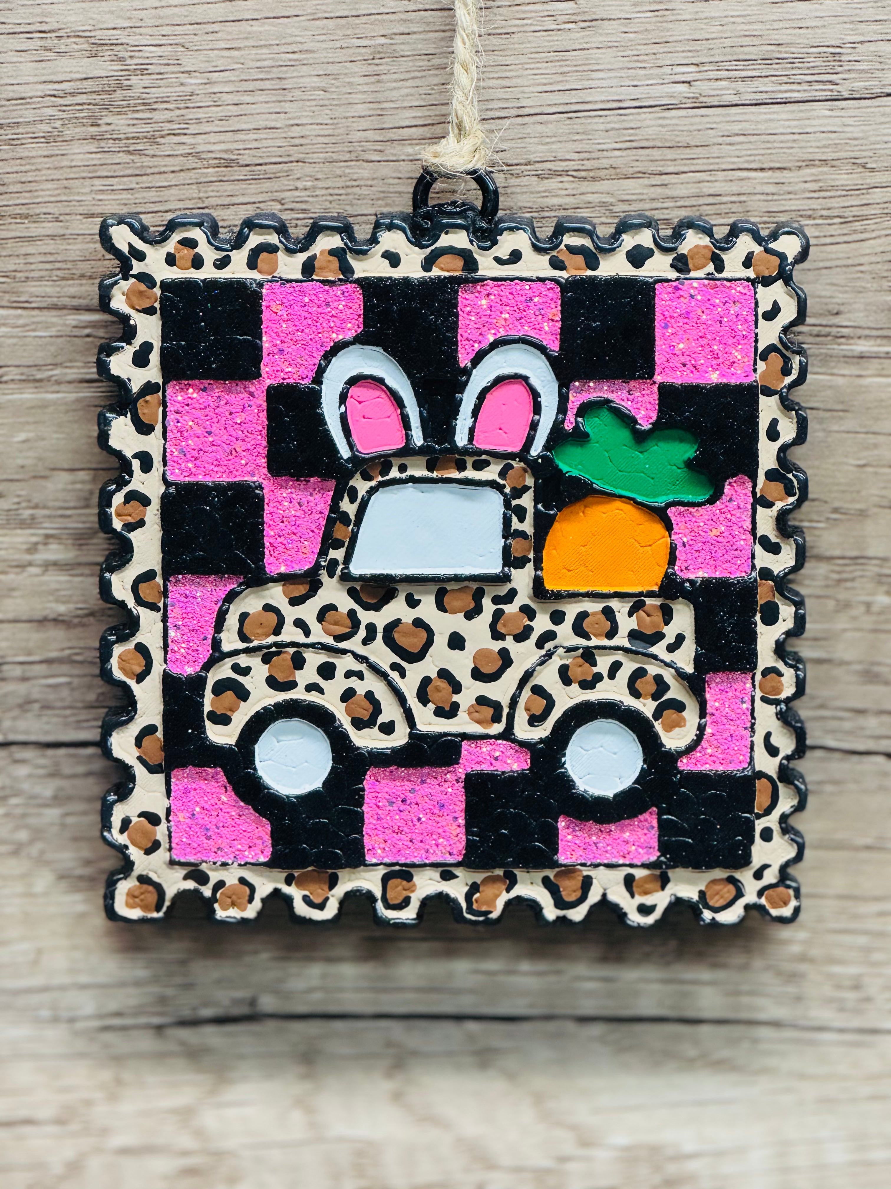 Leopard Bunny Truck Stamp